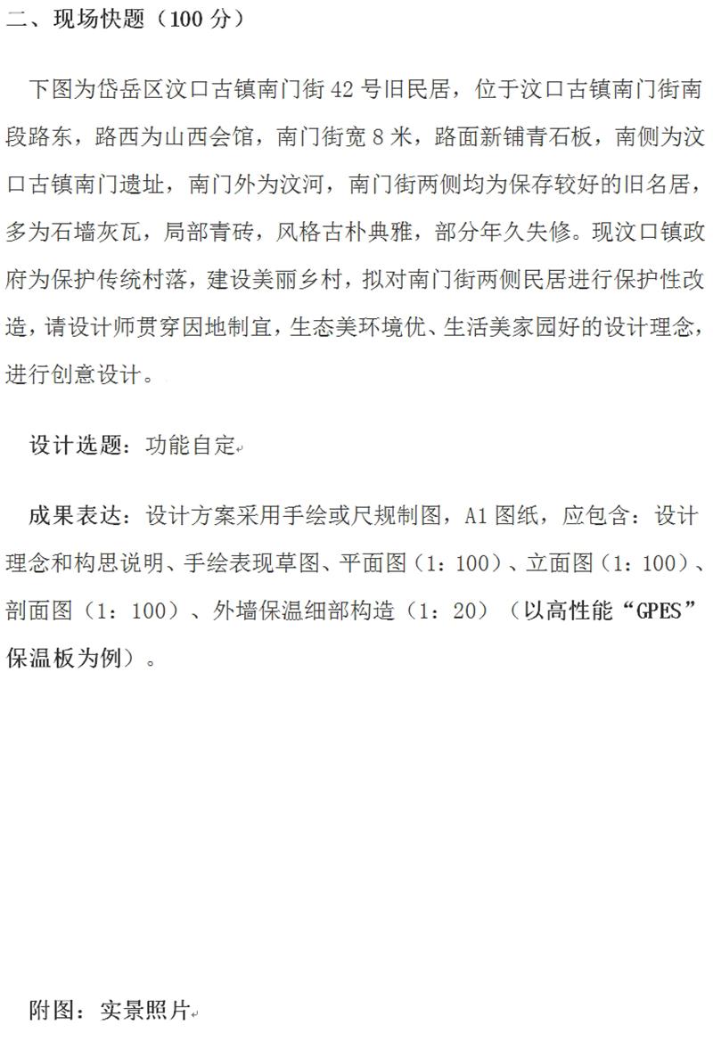 現(xiàn)場快題:建筑創(chuàng)意設(shè)計技能競賽考試題