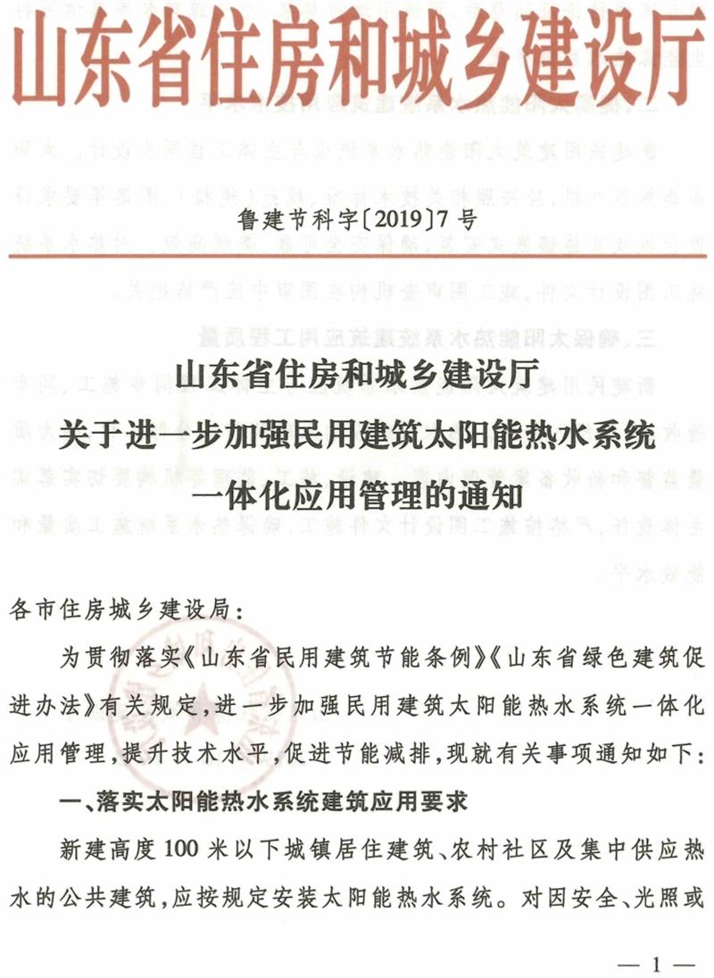 關(guān)于進(jìn)一步加強(qiáng)民用建筑太陽能熱水系統(tǒng)一體化應(yīng)用管理的通知